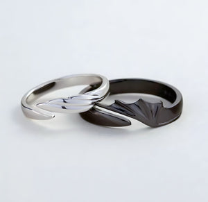 Inspired by the legendary How to Train Your Dragon saga, this promise ring set captures the essence of freedom, unity, and an unbreakable bond. Featuring a striking black ring and an elegant sterling silver ring, both adorned with a wing design, these rings symbolize the journey of love and adventure shared between two souls.